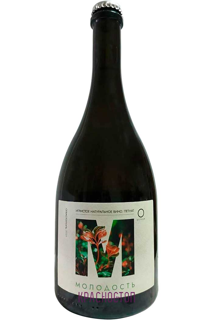 Белое игристое жемчужное вино брют Винодельня Остров Олега Николаева Петнат Молодость производится по технологии ансестраль из винограда сорта ркацители, выращенного на плато Кара-Тау.