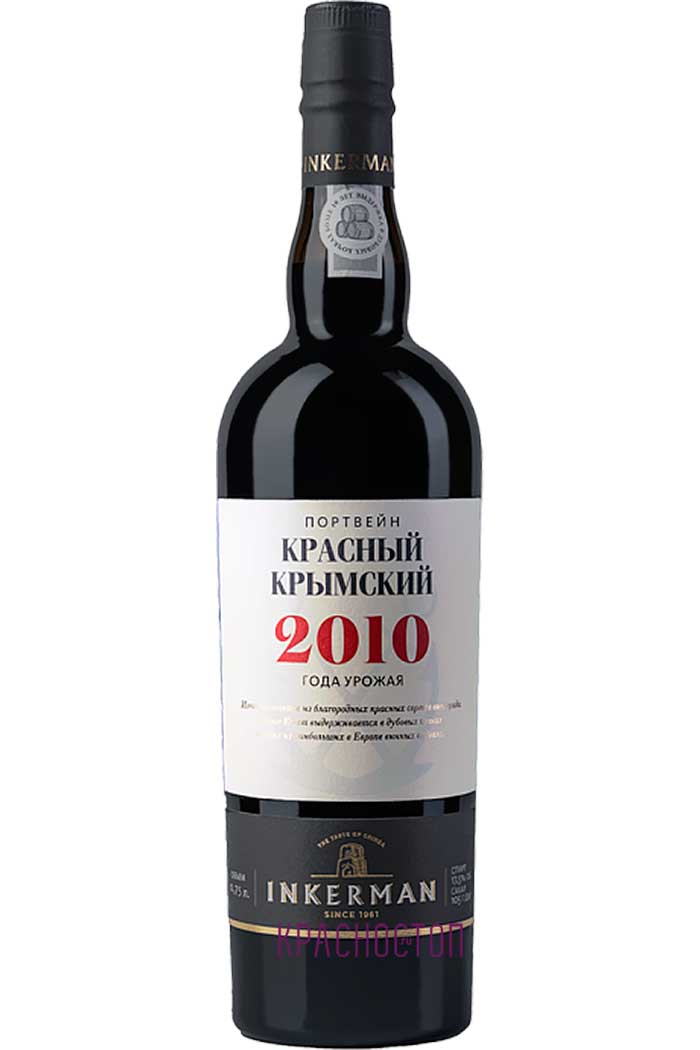 Красное крепленое марочное вино категории ЗГУ.Крым Инкерман Портвейн Красный урожая 2010 производится из бленда сортов винограда бастардо магарачский, саперави, каберне совиньон, выращенного на виноградниках предприятия в севастопольской винодельческой зоне. Вино выдерживается более 10 лет в дубовых бочках в инкерманских винных подвалах, что придаёт вину мягкость и сложность. Кондиции вина: содержание спирта 17,5 %, содержание сахара 105 г/дм³