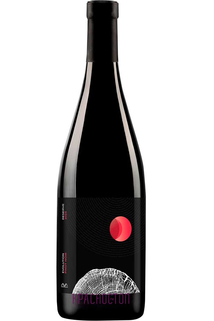 Красное сухое вино ЭВОЛЮШН РЕЗЕРВ ПИНО НУАР производится из одноименного европейского сорта винограда, выращенного на органическом винограднике Чоргун в селе Родное. Ручной сбор винограда, 10 дней холодной мацерации (при 5°C), 10 дней ферментация при контролируемой температуре (18-24°C), ежедневный ремонтаж и трёхкратный делистаж (удаление гребней) с отделением косточки для снижения грубых танинов, снятие самотека после брожения, прессование и объединение фракций, проведение яблочно-молочного брожения в стали (20 дней) для смягчения кислотности, выдержка 12 месяцев в новых 500-литровых бочках из французского дуба слабого обжига.