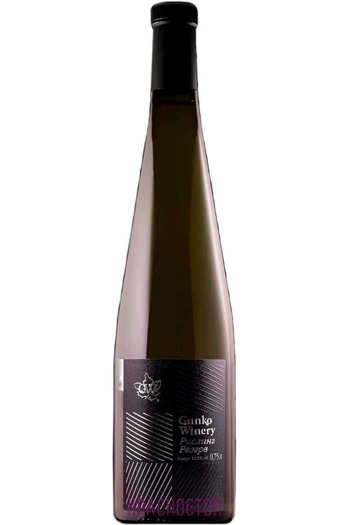 Белое сухое вино категории ЗГУ.Кубань Гунько Вайнери Рислинг Резерв производится из винограда сорта рислинг рейнский, выращенного на собственных виноградниках рядом со станицей Нижнебаканская. Ручной сбор винограда, охлаждение ягод, деликатное прессование, брожение при контроле температуры в бетонных емкостях яйцевидной формы, выдержка на осадке 10 месяцев.