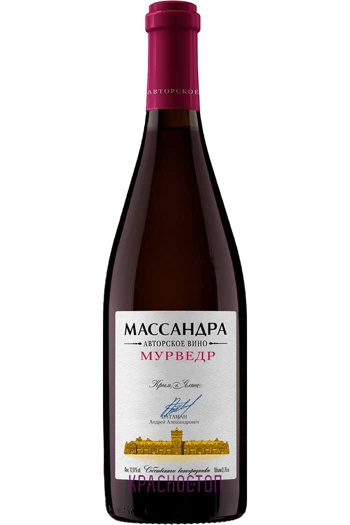 Красное сухое вино категории ЗГУ.Крым Массандра Авторское мурведр производится из одноименного сорта винограда, выращенного на винограднике неподалеку от поселка Приветное. Средний возраст лоз 10 лет, виноград собиран вручную при сахаристости не ниже 21%, в процессе производства применяется криомацерация (мацерация при пониженных температурах), а брожение при контролируемой температуре длится 15–20 дней. Для придания вину мягкой текстуры практикуется удаление косточек, в производстве используется сусло-самотек и сусло после первого деликатного прессования, все этапы отдельные этапы проходят в инертной среде. Выдержка 12 месяцев на тонком дрожжевом осадке в стальных емкостях. Винодел Андрей Патаман.