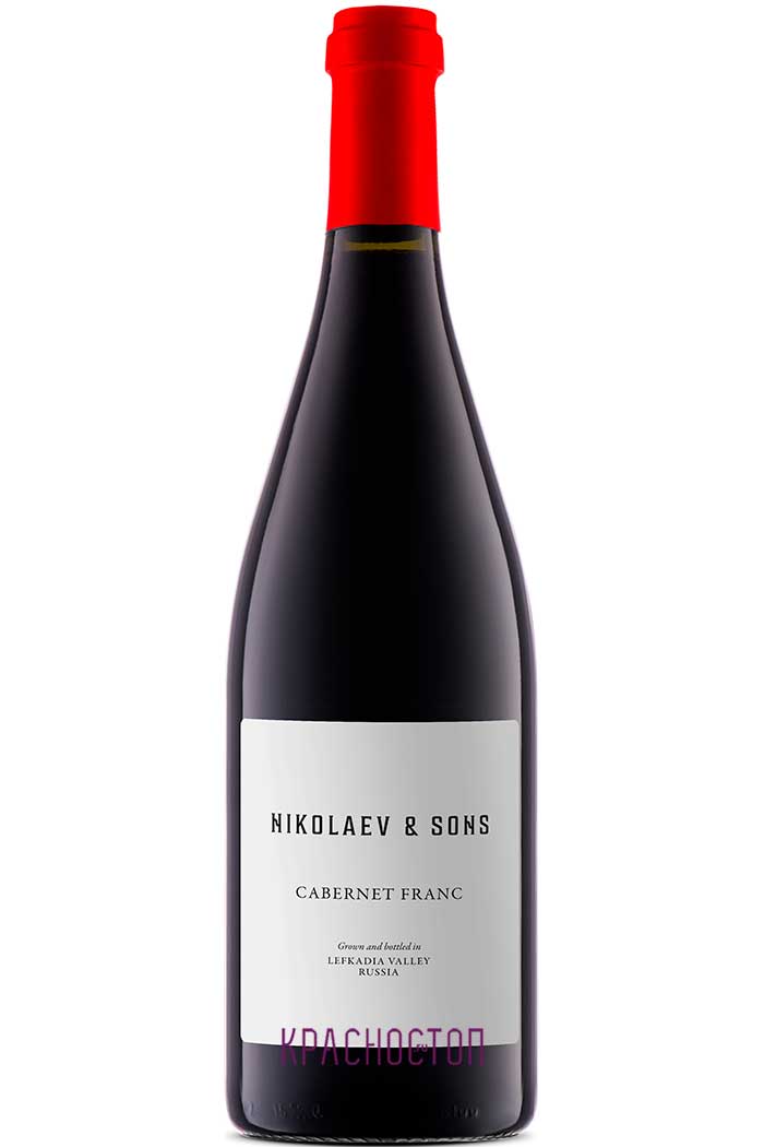 Nikolaev &Sons Cabernet Franc красное сухое вино, производится из одноименного сорта винограда, выращенного в "Долине Лефкадия" рядом с селом Молдаванское в Краснодарском Крае на красных илисто-песчаных почвах с содержанием железа. Ручной сбор винограда, проводилось ЯМБ, мацерация на кожице 21 день, выдержка в бочках из французского и карпатского дуба разного возраста и обжига в течении девяти месяцев Тираж 2308 бут.