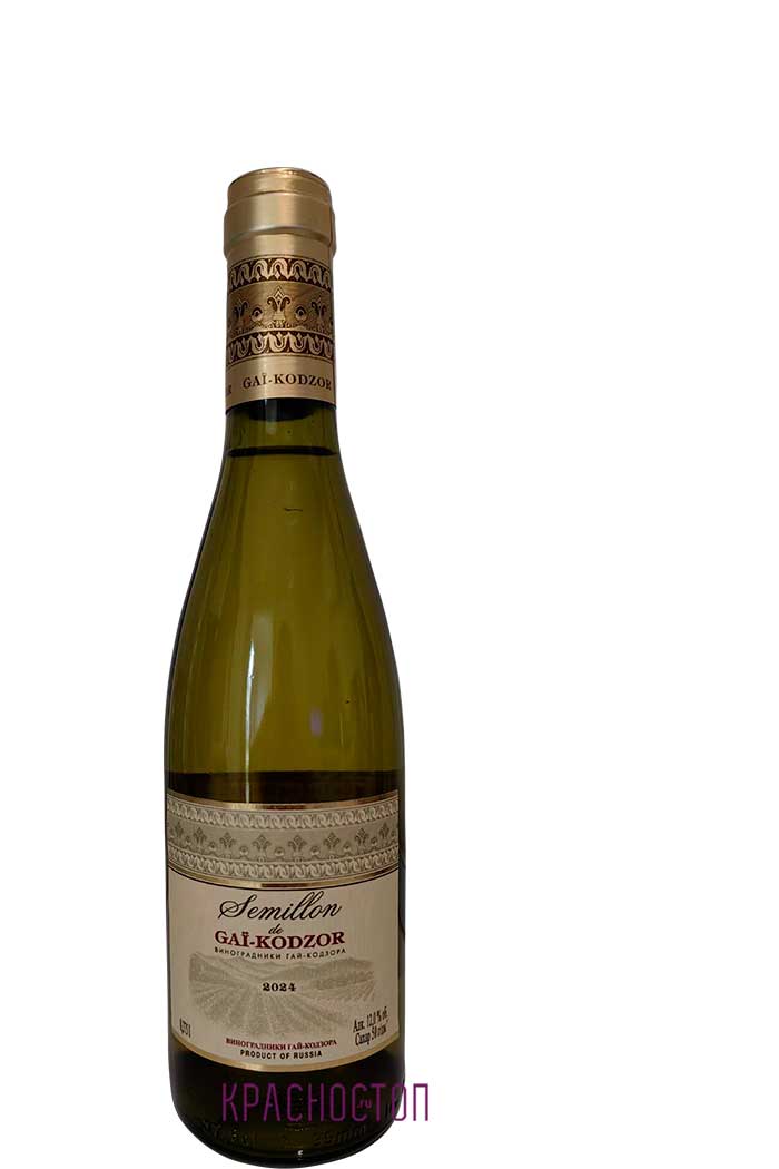 Белое сладкое вино Semillion De Gai_Kodzor производится из винограда сорта семильон выращенного на собственных виноградниках у подножия Семисамского хребта. Кондиции вина: сахар 45 г/дм3, спирт 12%. Цвет вина золотисто-зелёный. В букете преобладают ароматы спелых персиков, ананаса с медовыми тонами. Вино имеет маслянистую структуру, естественная сладость и кислотность прекрасно интегрированы, во вкусе спелые персики, абрикосы, миндальная косточка в завершении. Вино Семильон Де Гай Кодзор станет отлчиным дополнением к широкому спектру десертов при температуре подачи 14С.