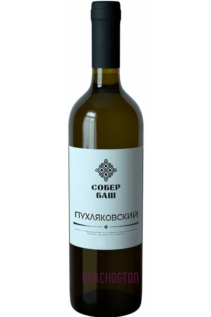 Белое сухое вино категории ЗГУ Собер Баш Пухляковский производится из одноименного донского сорта винограда, выращенного на собственных виноградниках, окруженных дубовым лесом в предгорьях Кавказа, на 150 м над уровнем моря. Ручной сбор, винификация в стальных емкостях при низких температурах, выдержка на осадке с регулярным баттонажем 6 месяцев.