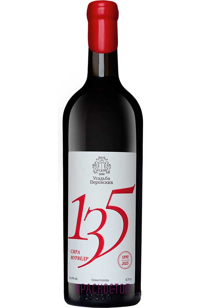 Красное сухое вино Усадьба Перовских 135 производится из бленда сортов винограда сира (85%) и мурведр (15%) выращенного в Севастопольской винодельческой зоне, на виноградниках ex. cовхоза им. Софьи Перовской. Вино подвергалось длительной раздельной выдержке в новых бочках из французского дуба, сира 3,5 года, мурведр 1,5 года. По итогам выдержки проводился ассамбляж и дополнительных отдых вина в бутылке перед выпуском на рынок.