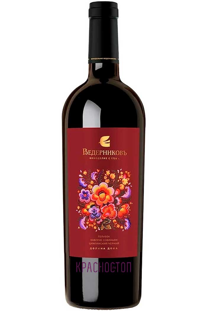 Красное сухое вино категории ЗГУ.Долина Дона Ведерниковъ Голубок производится из бленда сортов каберне совиньон, цимлянский черный, голубок, выращенного на собственных виноградниках хозяйства.