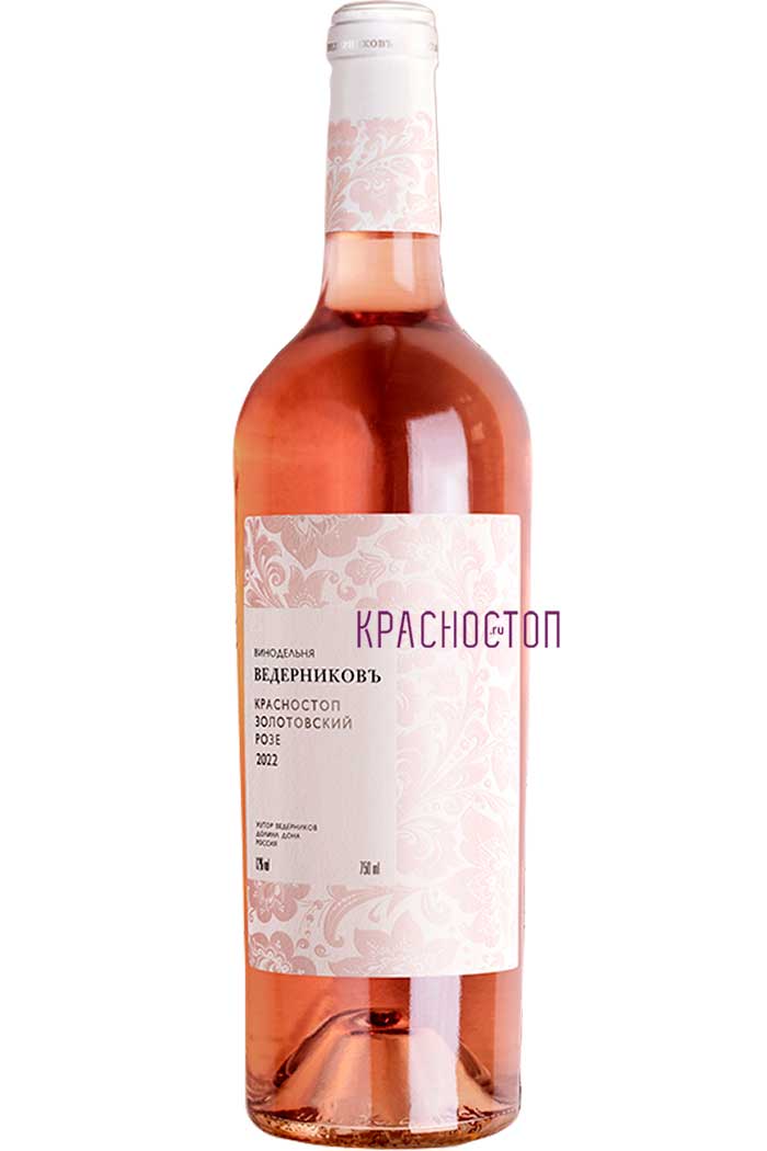 Розовое сухое вино категории ЗГУ Долина Дона "Краснотоп Розе" производится из винограда сорта красностоп золотовский, выращенного на Правом Берегу дона близ хутора Ведерниковъ